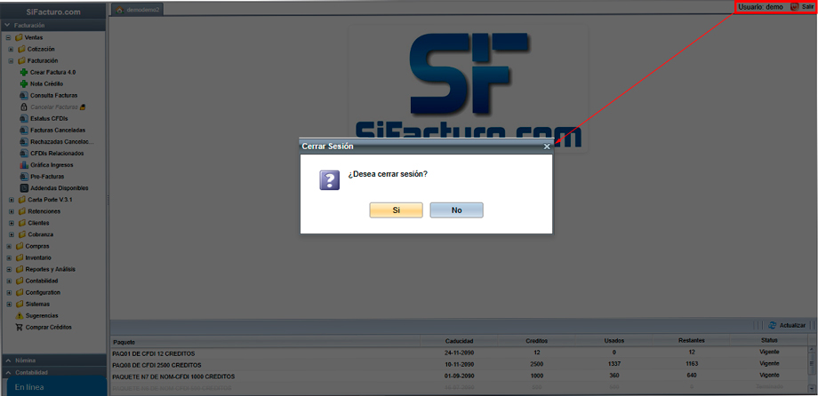 ===Menú principal SiFacturo === | ===Menú principal SiFacturo === | ||