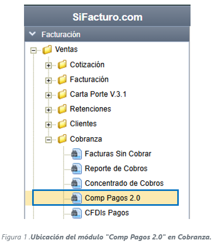 Dirígete al menú principal y selecciona Cobranza > Comp de pagos 2.0
