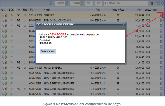 *Confirma la desasociación del pago | |||