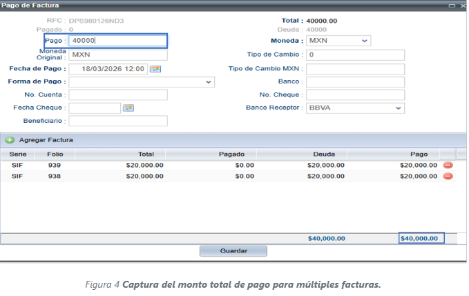 📌 Nota importante: No siempre tendrás que agregar varias facturas. Habrá ocasiones en que el pago de tu cliente se registre solo para una factura, y otras veces se podrá relacionar con varias facturas al mismo tiempo. | |||